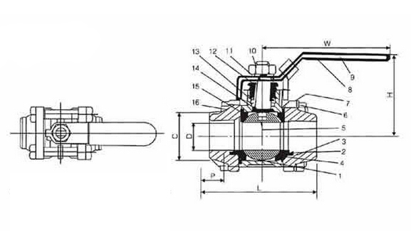 焊接球閥結(jié)構(gòu)圖: