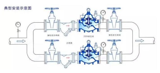 (4)減壓閥安裝必須嚴格按照閥體上的箭頭方向保持和流體流動方向一致。如果水質(zhì)不清潔含有一些雜質(zhì),必須在減壓閥的上游進水口安裝過濾器(我們建議過濾精度不低于0.5mm)。