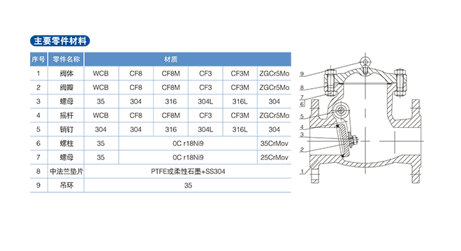 旋啟式止回閥搖臂和閥瓣連接處采用球面連接的結(jié)構(gòu),使得閥瓣在360度范圍內(nèi)有一定的自由度,有適當(dāng)?shù)奈⒘课恢醚a(bǔ)償。旋啟式止回閥可選用各種配置法蘭標(biāo)準(zhǔn)及法蘭密封封面型式,滿足用戶不同需求。