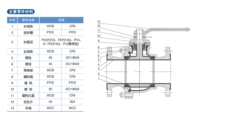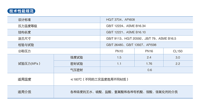 2.?材料特性?:該閥門采用碳鋼材質和氟塑料(如FEP)襯里,具有極高的化學穩(wěn)定性,適用于任何強腐蝕性化學介質。其耐腐蝕性能優(yōu)異,適用于-50℃到150℃的各種濃度的王水、硫酸、鹽酸和各種有機酸、強酸、強氧化劑等介質?。
