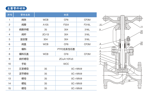 波紋管截止閥是引進(jìn)國外先進(jìn)技術(shù)、采用國外金屬波紋管密封技術(shù)制造,高性能的彈性金屬波紋管,伸縮疲勞壽命特別長。波紋管截止閥采用波紋管密封的設(shè)計,完全消除了普通閥門閥桿填料密封老化快易泄露,不但提高了使用能源效率,增加生產(chǎn)設(shè)備安全性,減少了維護(hù)費(fèi)用及頻繁的維護(hù)保養(yǎng),還提供了清潔安全的工作環(huán)境。