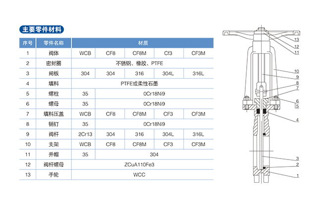 刀型閘閥的啟閉件是刀型閘板,閘板的運動方向與流體方向相垂直,刀型閘閥只能作全開和全關(guān),不能做調(diào)節(jié)和節(jié)流。刀型閘閥關(guān)閉時,密封面可以依靠介質(zhì)壓力來密封,即依靠介質(zhì)壓力將閘板的密封面壓向另一側(cè)的閥座來保證密封面的密封,大部分刀型閘閥是采用強制密封的,即閥門關(guān)閉時,要依靠外力強行將閘板壓向閥座,可刮除密封面上的雜物,不銹鋼閘板可防止腐蝕引起的密封泄漏。